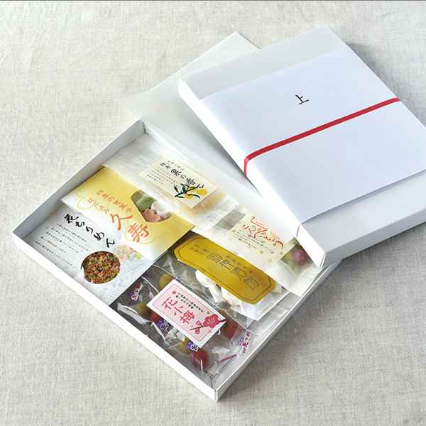 かぶせ箱は中の商品の上に白の薄紙を掛けてご用意いたします。